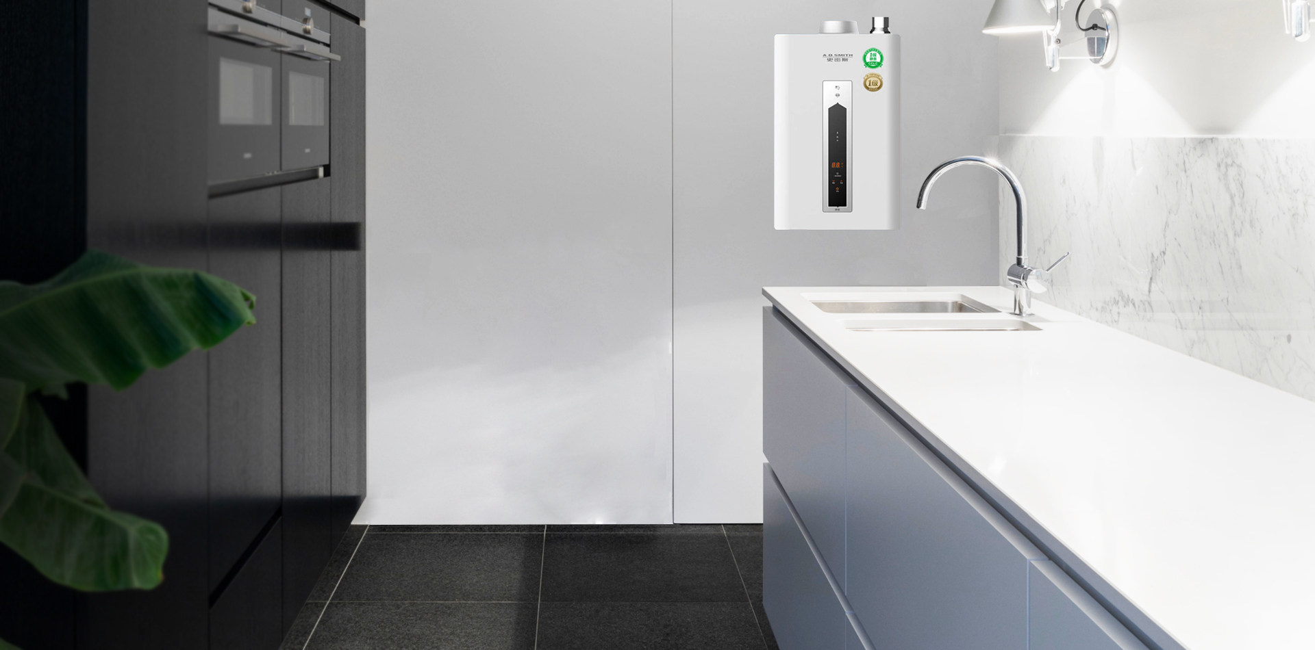 位于室外管道井內(nèi),巧妙利用空間,選用了A.O.史密斯EES-40B型落地式家庭中央熱水器新一代全產(chǎn)權(quán)、